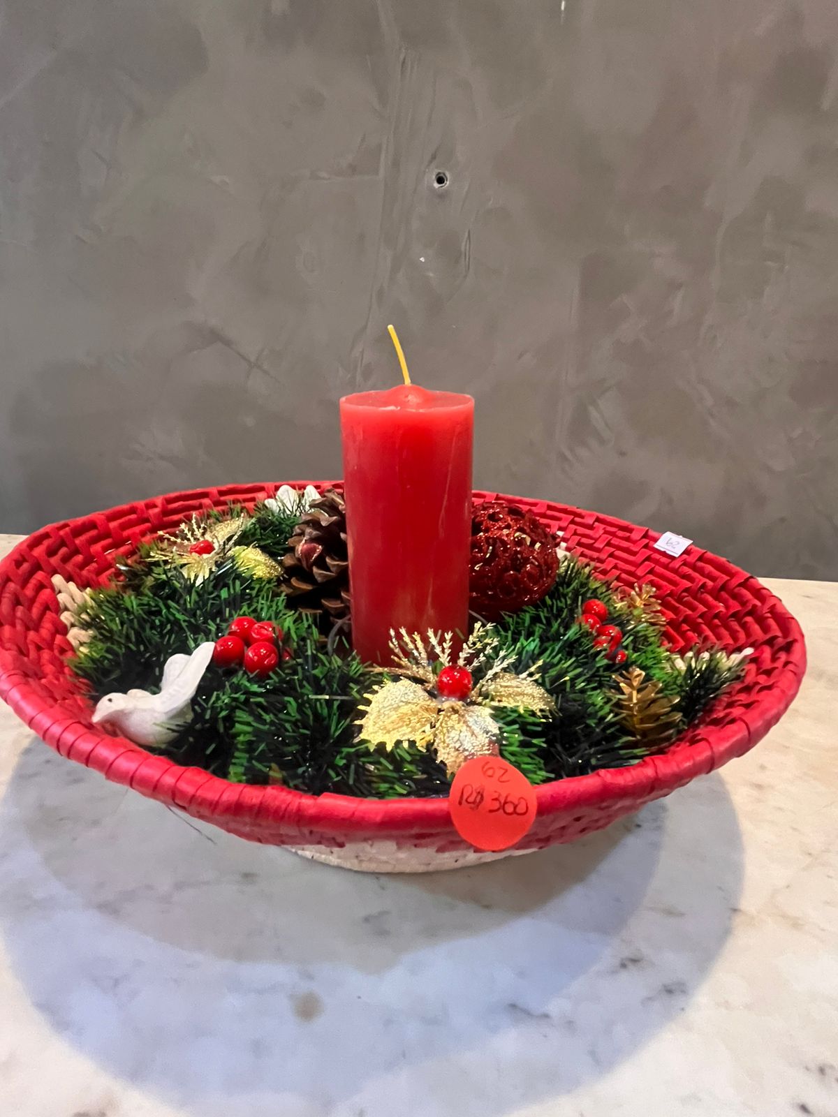 Prato para mesa com vela vermelha